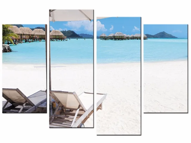 Hot Penjualan Framed 4 Panel Gambar Pantai Sea View Hd Canvas Print