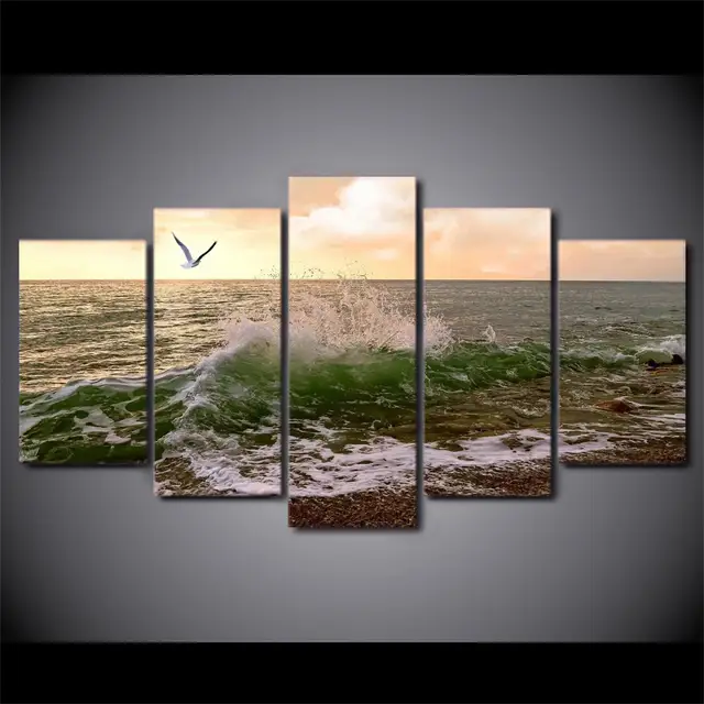 Online Shop 5 Pcs Set Framed Hd Dicetak Pantai Gelombang Laut Camar