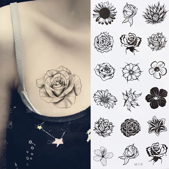 Hc1033 Tahan Air Sekali Pakai Stiker Tato Wanita Seksi Bunga