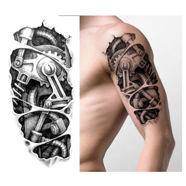 Tato Temporer Baru Hitam Lengan Mekanik Transfer Palsu Tato Stiker