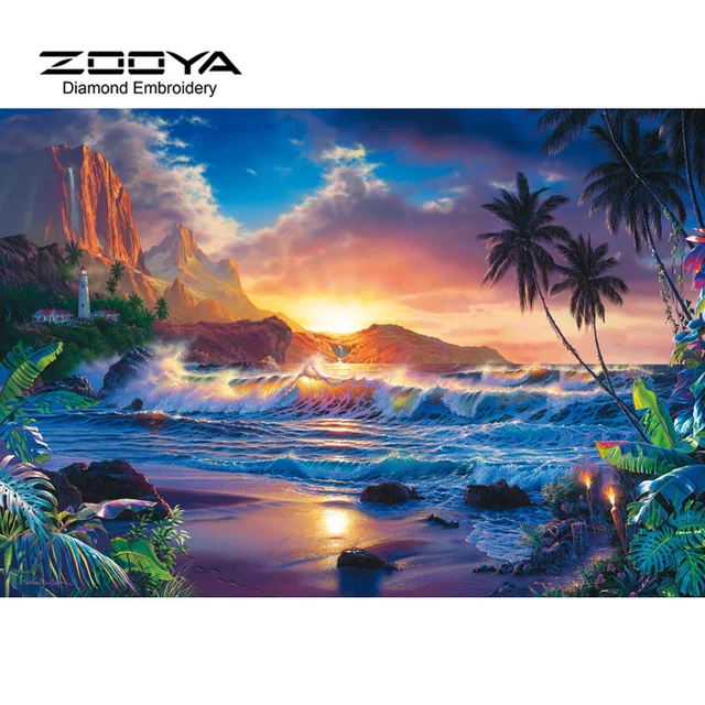 Zooya Berlian Bordir Diy Berlian Lukisan Sunset Bulan Tepi Pantai