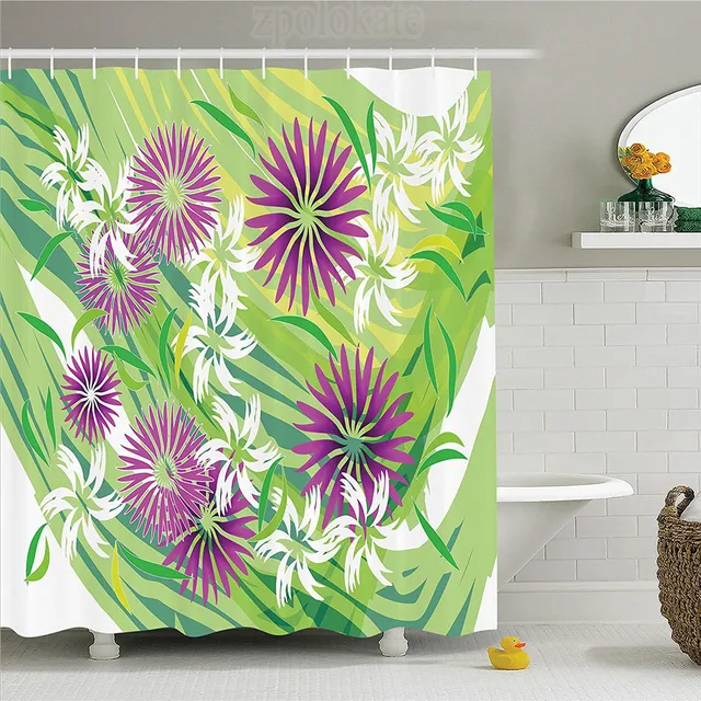 Batik Dekorasi Shower Tirai Timur Bunga Ilustrasi Dengan Alam Dan