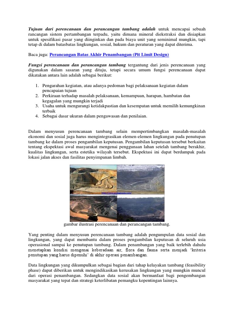 Tujuan Dari Perencanaan Dan Perancangan Tambang Adalah Untuk