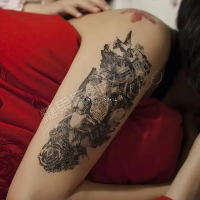Tahan Air Tato Sementara Stiker Yang Indah Bunga Mawar Palsu Tatto