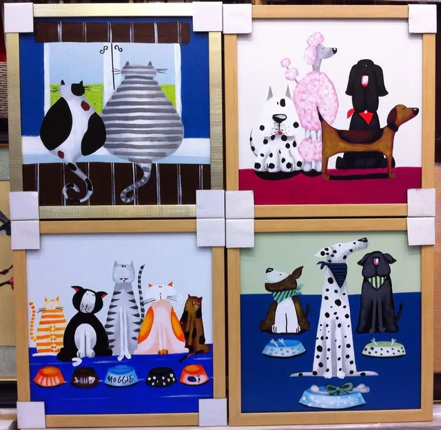 100 Handpainted Kanvas Lukisan Kartun Keren Dan Indah Anjing Dan