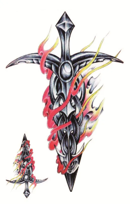 Pedang Api Keren Pisau Kecantikan Seksi Tato Tahan Air Stiker Tato