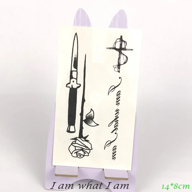 Tahan Air Tato Sementara Belati Pisau Mawar Bunga Cross Aku Apa