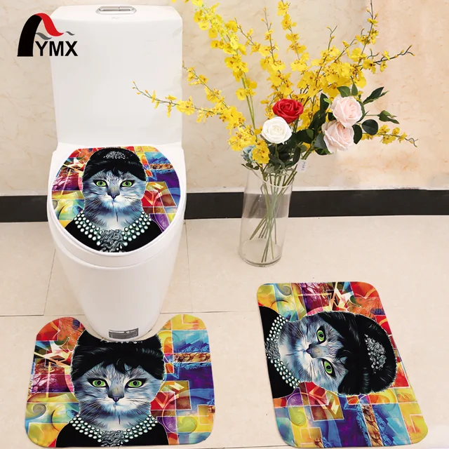 3 Pcs Set Lucu Kartun Kucing Anjing Toilet Kursi Penutup Kain Flanel