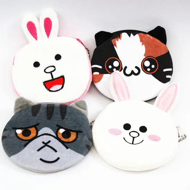 Fashion Girl Lucu Kartun Kucing Pola Kain Flanel Pendek Dompet