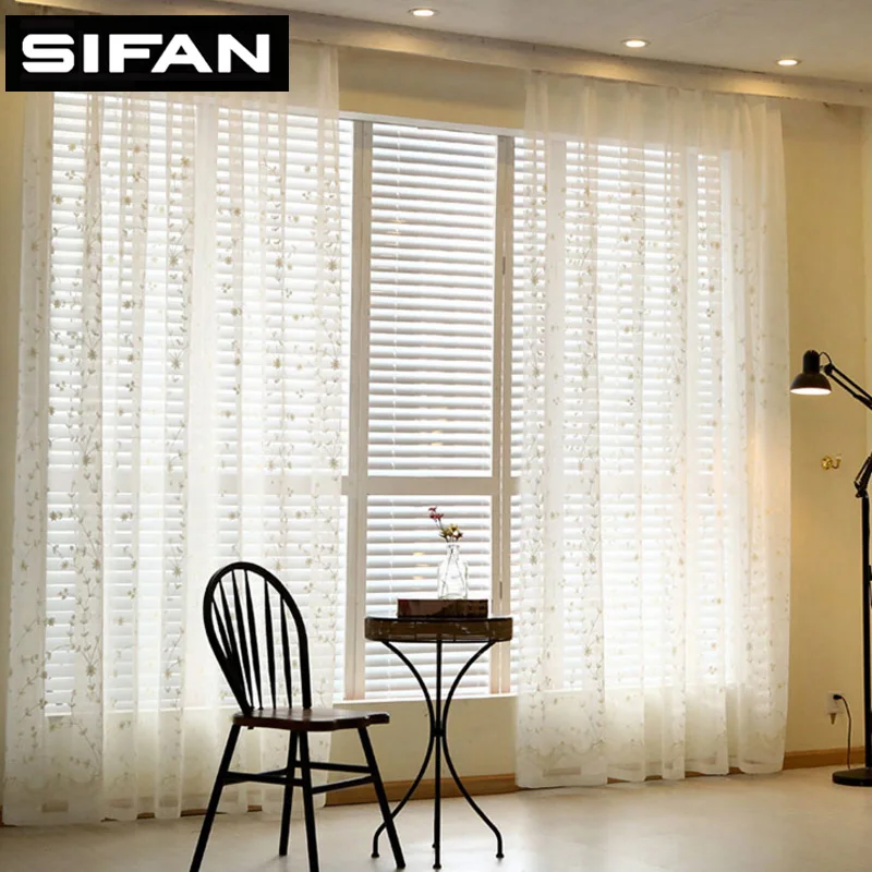 Langit Baru Putih Biru Langsir Tulle Bersulam Untuk Bilik Hidup