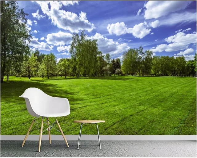3d Ruang Wallpaper Kustom Foto Pohon Padang Rumput Langit Biru
