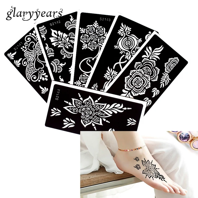 6 Pieces Henna Tattoo Stencil Bunga Mawar Pola Pasta Menggambar Lady