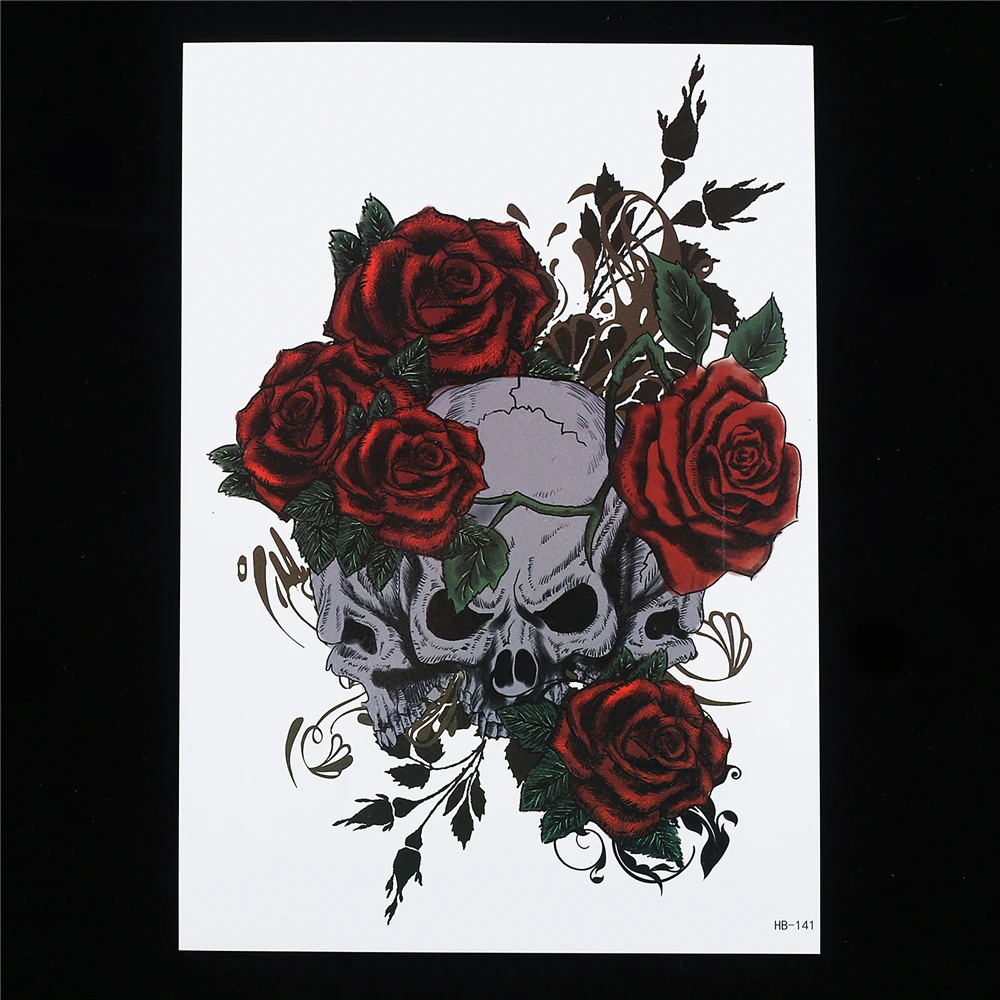 1 Lembar Besar Besar Penuh Lengan Stiker Tato Tengkorak Bunga Mawar