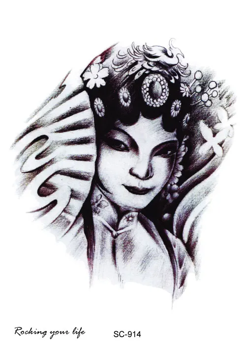 Sc2914 Besar 2d Sketsa Chinese Opera Senyum Gadis Desain Keren Dada