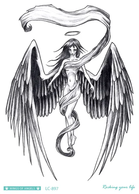 21 15cm Body Art Halloween Sketch Angel Large Tatoo Sticker Designer