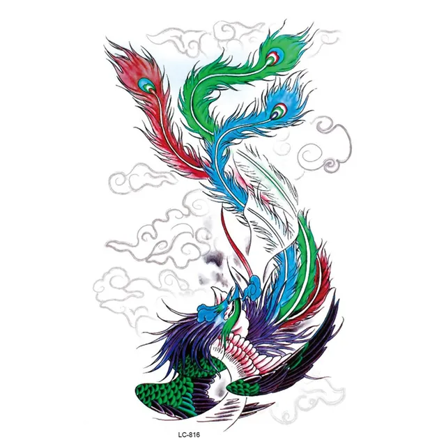 Flash Tribal Sexy Tattoo Sticker Sketch Colorful Flying Phoenix 3d