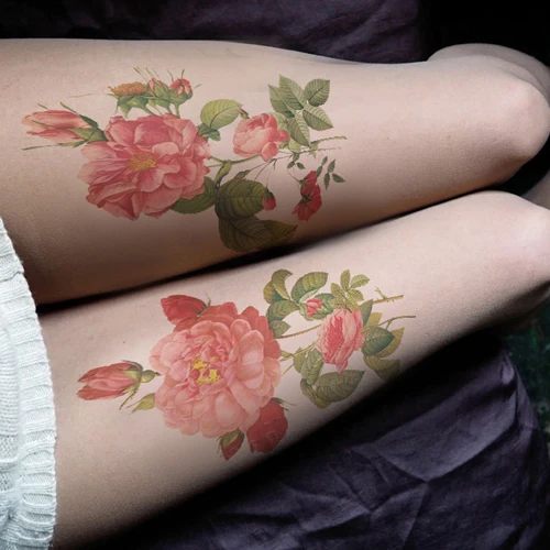 Tahan Air Stiker Tato Sementara Seksi Grace Bunga Pada Paha Kembali
