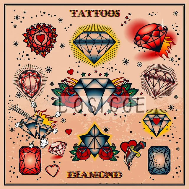 Seniman Tato Naskah Tato Berlian Fashion Terbaru Vintage Kraft