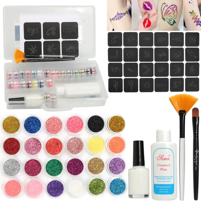 24 Warna Bubuk Sementara Shimmer Glitter Tato Kit Untuk Makeup Body