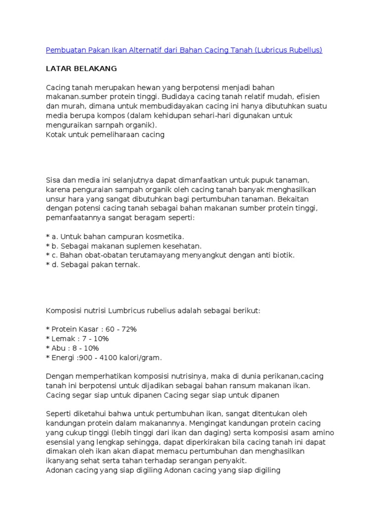 Pembuatan Pakan Ikan Alter Nat If Dari Bahan Cacing Tanah