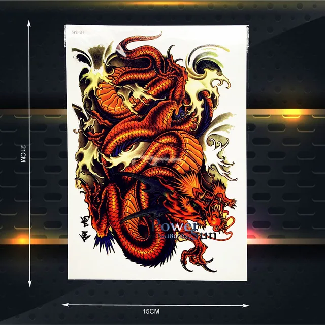 Us 0 89 Diy Flash Palsu Temporary Tattoo Pria Tubuh Art Transfer Tato Lengan Lengan Tato Dada Bahu Metalik Keren Naga Api Desain Di Sementara Tato