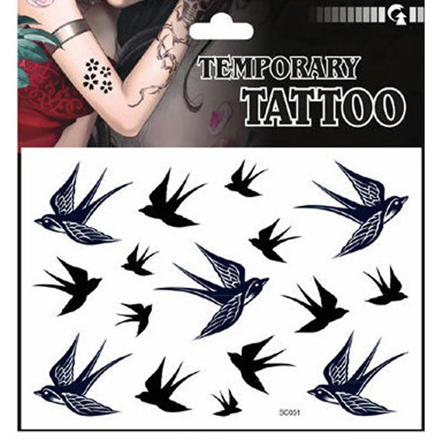 Stiker Tato Burung 10 5 6 Cm Fashion Pria Hitam Menelan Stiker Tato