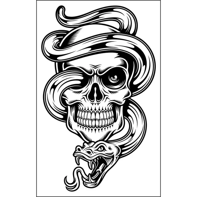 2017 New Design Cool Tattoo Body Art Skull And Snake 19x12cm