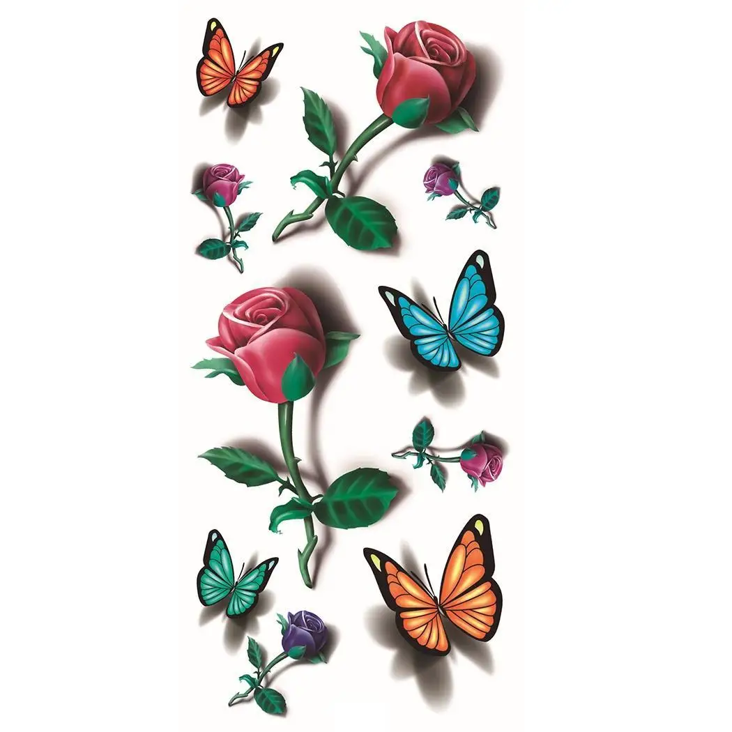 2015 New Colorful 3d Butterfly Tattoo Sticker Waterproof Rose