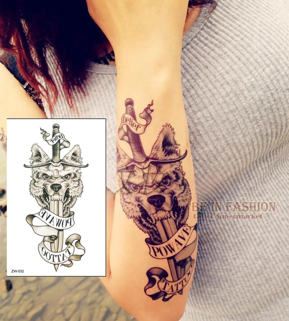 Us 1 13 1 Piece Trendy Keren Serigala Pedang Senjata Tato Tubuh Stiker Armband Tattoo Temporary Tahan Air Besar 19 12 Cm Untuk Mens Wanita Zw032 Di