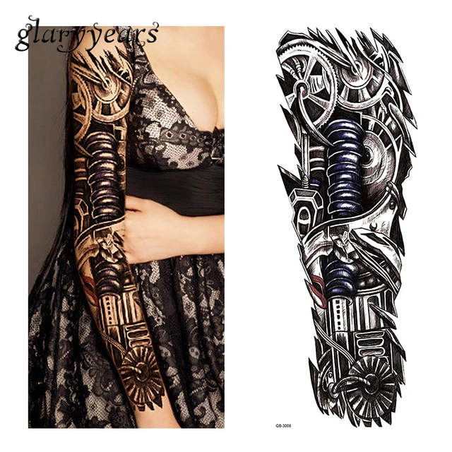 1 Piece Tattoo Sticker Robot Machine Gear Pattern Temporary Full