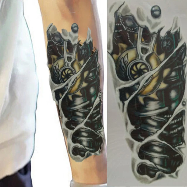 1 Pc Mekanik 3d Robot Arm Temporary Tattoo Stiker Tahan Air Besar 21