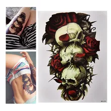 1 Lembar Besar Besar Penuh Lengan Stiker Tato Tengkorak Bunga Mawar