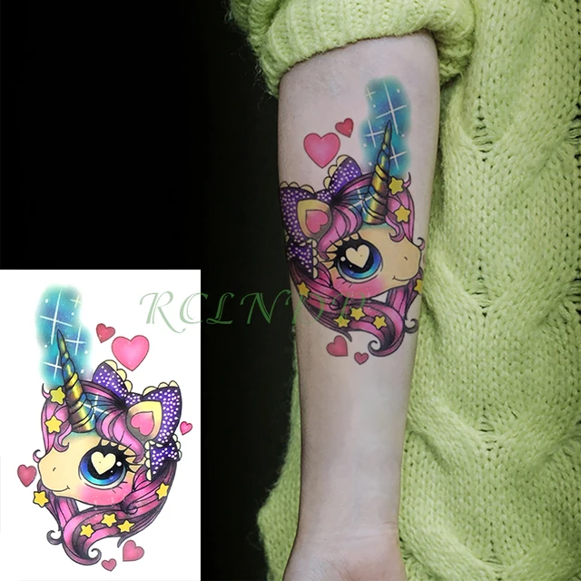 Tahan Air Stiker Tato Sementara Unicorn Kuda Palsu Tatto Kartun Yang