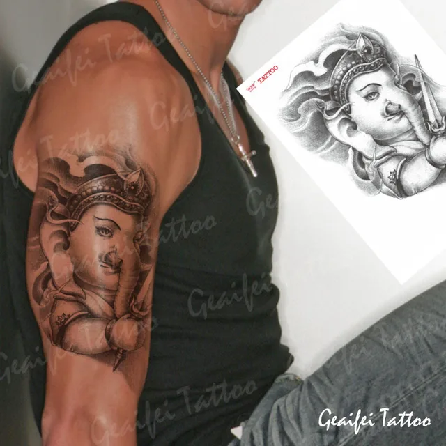 Besar Tato Sementara Stiker Tahan Air Thai Ganesha Buddha Desain