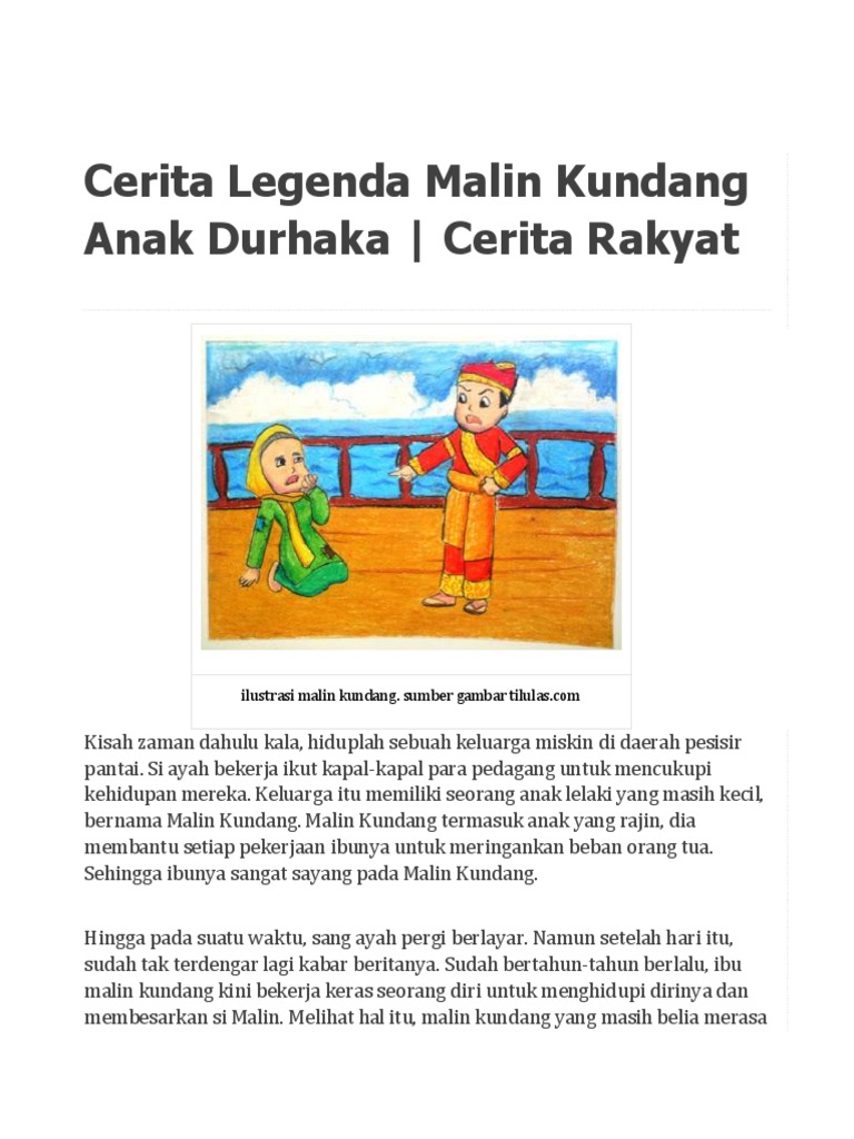 Cerpen Bergambar Cerita Malin Kundang Dalam Bahasa Inggris