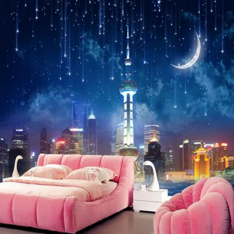 Beibehang Kustom Besar Fresco Kota Langit Langit Penuh Bintang Bulan