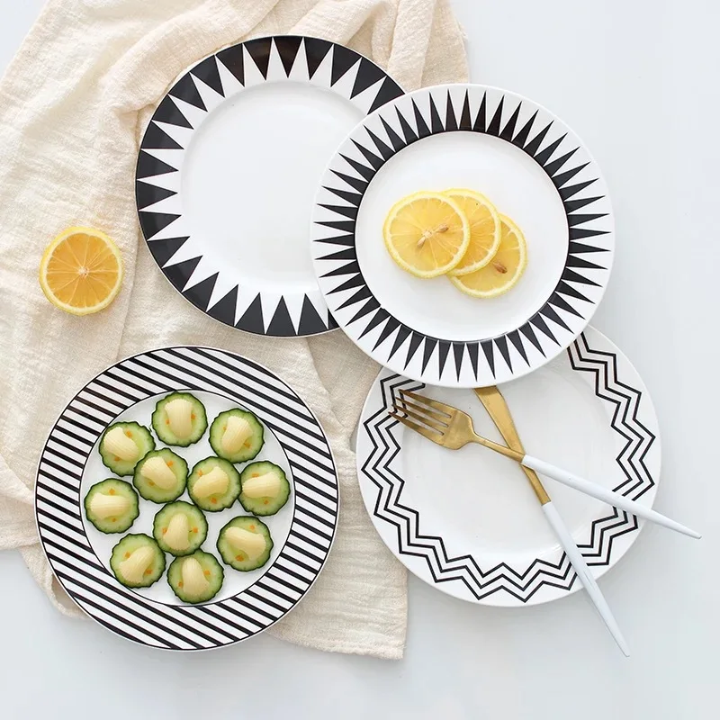 Geometri Gambar Piring Datar Gaya Sederhana Salad Piring Keramik