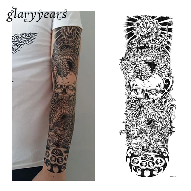 1 Piece Stiker Tato Mawar Bunga Naga Skull Pola Penuh Bunga Lengan