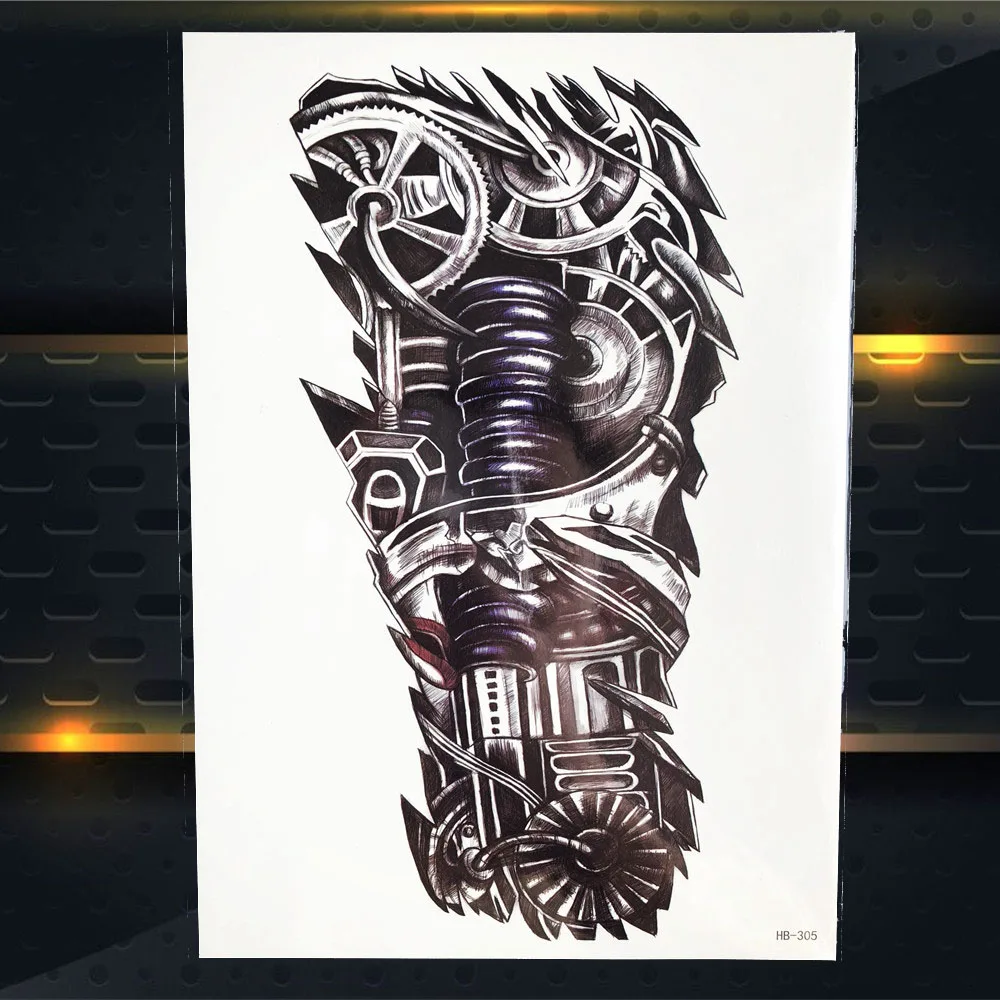 Tahan Air Penuh Lengan Stiker Tato Mawar Jam Tengkorak Pedang Mesin