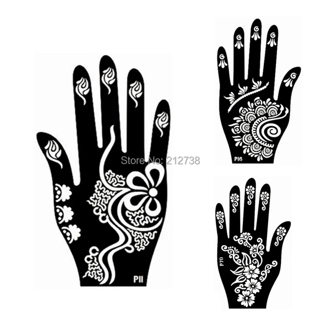 10 Pair Kiri Tangan Kanan Tattoo Stencil Henna India Glitter Henna
