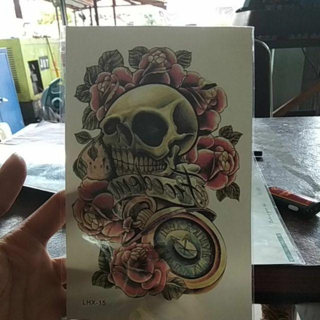 Tatto Temporary Tengkorak Dan Bunga Mawar Shopee Indonesia