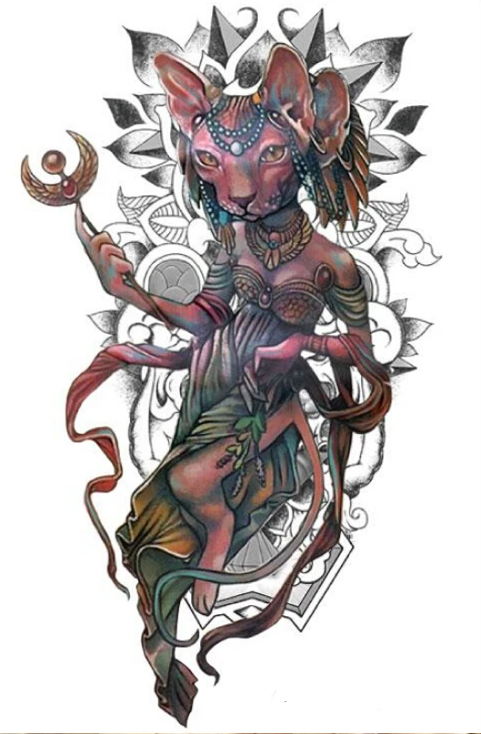 1 Pcs 3d Besar Stiker Tato Temporer Warna Warni Seksi Kucing Besar