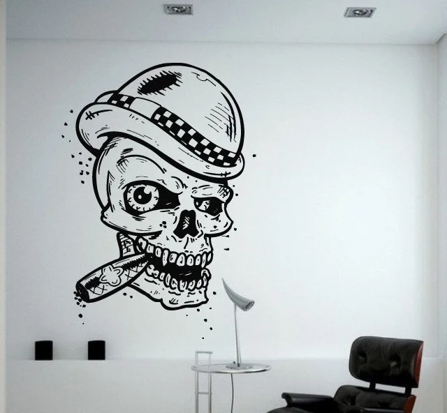 Tengkorak Kepala Merokok Keren Dinding Stiker Moderen Gaya Vinil
