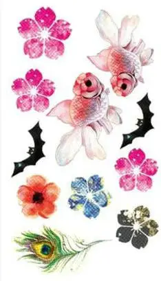Tattoo Stiker Pola Ikan Mas Kecil 10 5 6 Cm Bunga Berwarna Warni