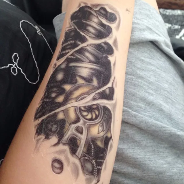 1 Pc 3d Tahan Air Sementara Tato Untuk Pria Lengan Mekanis Desain