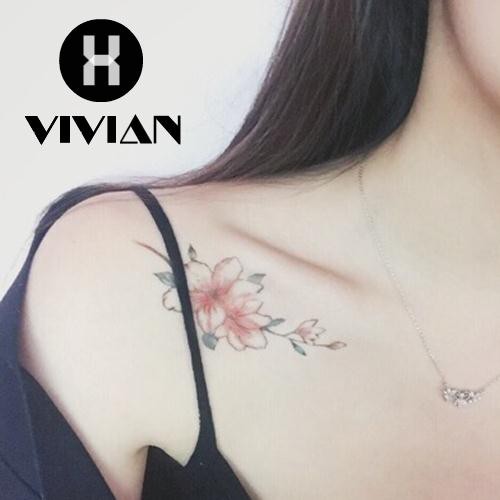 Stiker Tato Gambar Bunga Cherry Blossom Tahan Air Tahan Lama Untuk