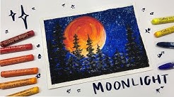 Cara Menggambar Pemandangan Langit Malam Night Sky Moonlight Gradasi
