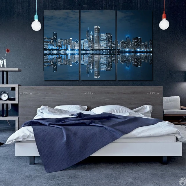 Us 5 1 49 Off Wall Art Painting Gambar Cetak Pada Kanvas Kota Gambar Untuk Dekorasi Rumah Biru Keren Bangunan Di Warna Gelap Di Chicago Di Painting