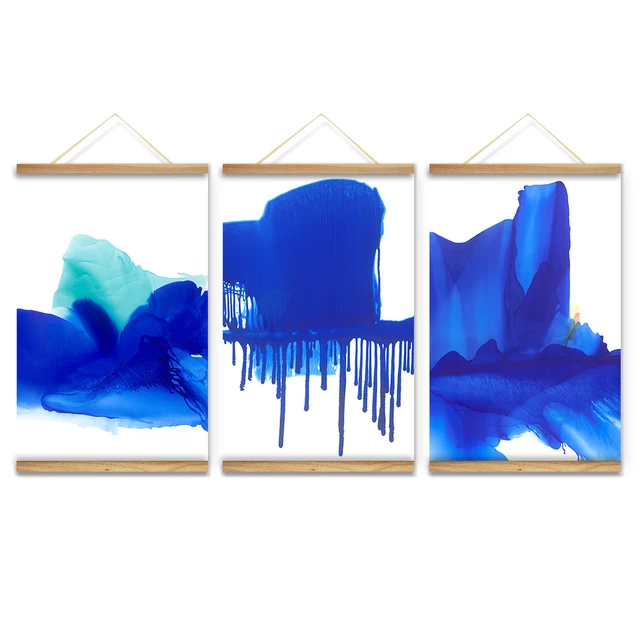 Us 49 98 Keren Biru Warna Dekorasi Wall Art Gambar Lukisan Gulir Gantung Kanvas Kayu Untuk Ruang Tamu Dekorasi Rumah Siap Untuk Menggantung Di