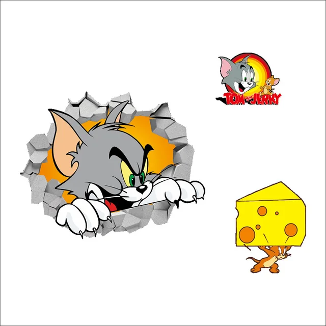 Kreatif Kucing Dan Tikus 3d Tiga Dimensi Efek Rusak Stiker Dinding